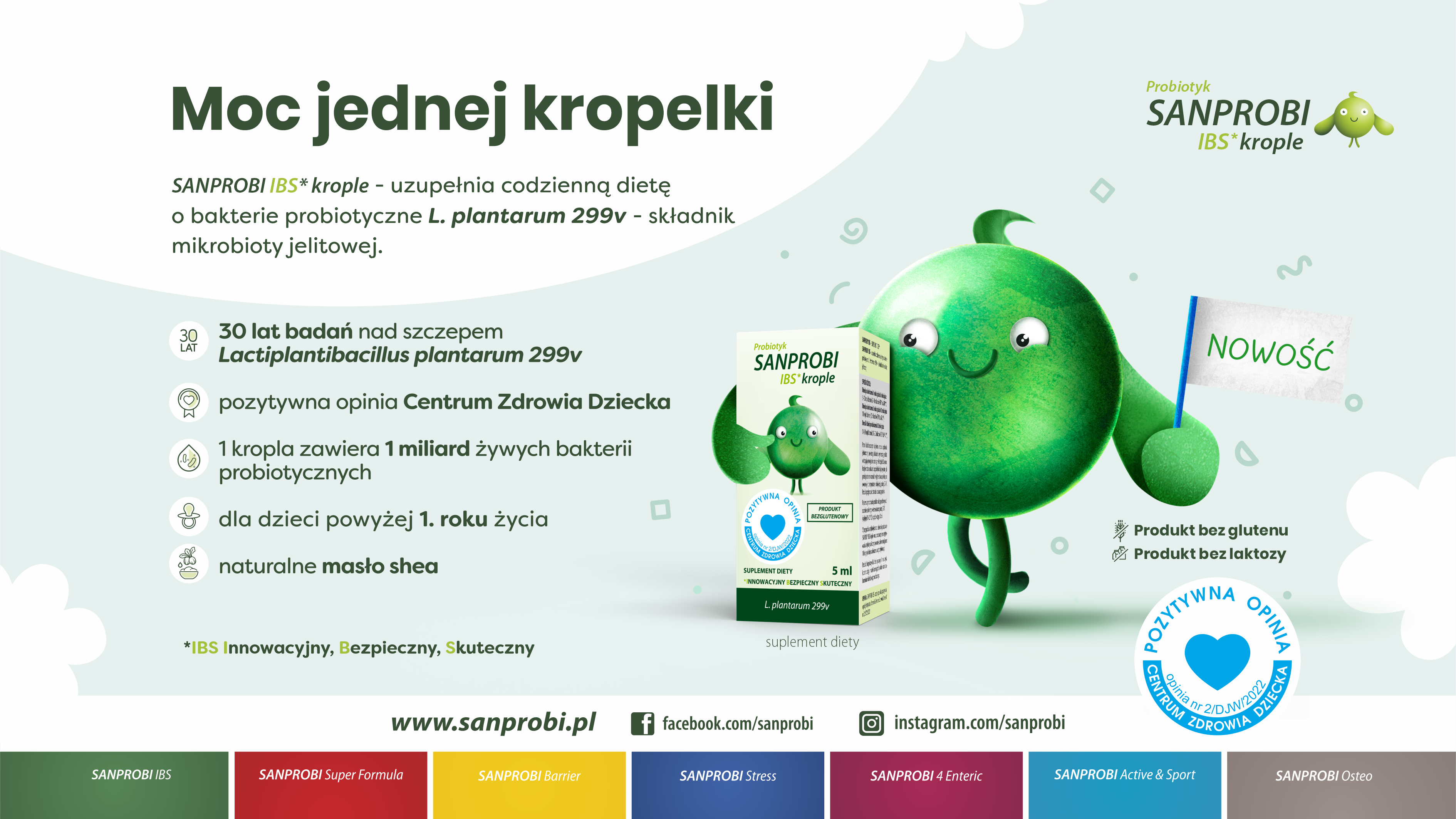 SANPROBI Sp. z o.o. Sp.k. posiada w swojej ofercie najwyższej jakości produkty zawierające wyselekcjonowane szczepy bakterii probiotycznych. Produkty SANPROBI wyznaczają nowe trendy w branży suplementów diety w Polsce. Powstają one z wykorzystaniem innowacyjnych technologii, a ich skład i bezpieczeństwo potwierdzane są regularnie w laboratoriach analitycznych. O wysokiej jakości produktów SANPROBI świadczą liczne badania.